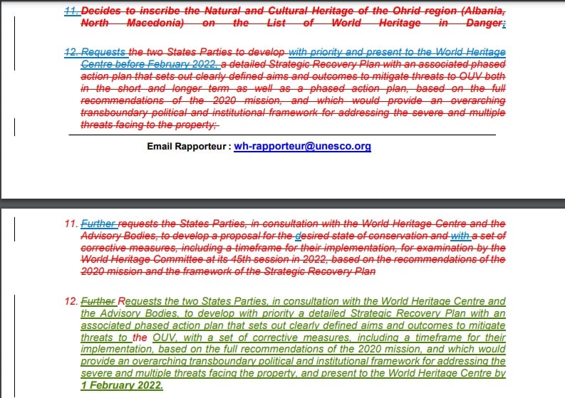 25 јули, 2021: Соопштение за јавност по одлуката на Комитетот за светско наследство на УНЕСКО, Охридскиот Регион да не го стави на Листата на светско наследство во опасност и покрај утврдените актуелни и потенцијални закани по неговата Исклучителна универзална вредност.